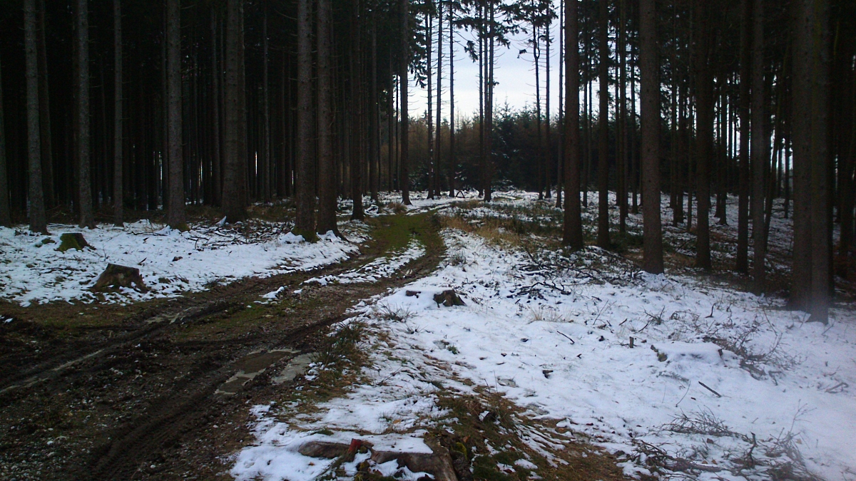 Abwechselnd auf kleinen Trails und Waldwegen mach ich einen kleinen Abstecher zum historischen Grenzstein und auf den Schloßberg an dem aus welchen Grund auch immer das Kreuz abmontiert wurde.